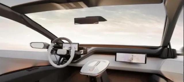 内饰方面新车采用了全新的布局风格,虽然简洁但还是很有未来感的,左侧是皮革材质包裹的三幅式多功能方向盘,前方是一块悬浮式显示屏,中控处同样是一块悬浮式显示屏,除此之外几乎看不到其他东西了,给人的感觉还是很高级的。